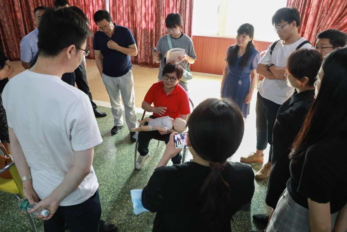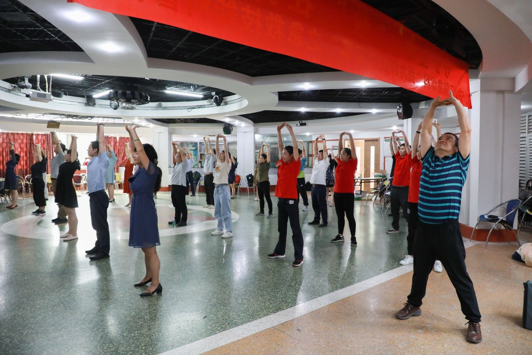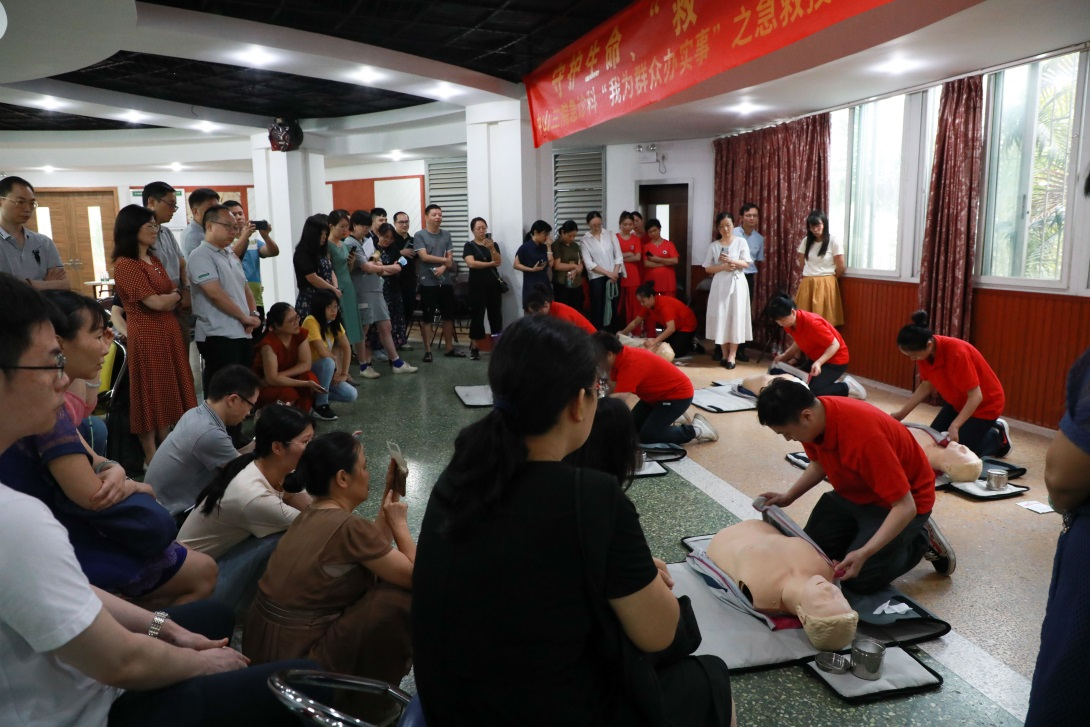 培训还邀请了我校附属第三医院急诊科团队和中医科团队作急救知识科普和八段锦教学。参会人员在医护人员的指导下现场学习了心肺复苏术、伤口包扎及气道异物梗阻处理即海姆立克急救法等操作,进行了八段锦集体习练。
