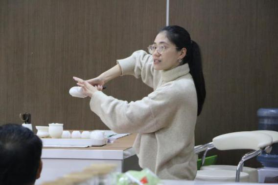 活动开始后,主讲老师先给学员们详细地介绍了公道杯、茶刮、茶漏、茶荷等基本茶具的用途和用法,然后简单介绍了英红九号、普洱生茶、普洱熟茶、凤凰单丛等四种茶的来源和品质,并讲述了泡茶的四大步骤——取茶、温杯洁具、润茶、冲泡。除此之外,主讲人还提出了几点泡茶的注意事项,并亲手为大家演示泡茶的具体操作。