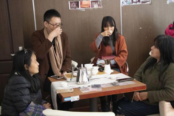 在主讲人的讲解和实际演示后,学员们跃跃欲试,兴致盎然地动手制茶。在主讲人的指导下,每桌学员围坐在一起,陆续尝试泡制了英红九号、普洱生茶、普洱熟茶、凤凰单丛共四种茶。活动中,一股股浓厚的茶香迫不及待地窜出茶杯,渗进心脾,空气中到处氤氲着让人心旷神怡的茶香。完成制茶之后,大家开始细细地品尝自己亲手泡制的茶,透露着惬意与满足。在大家品茶的同时,主讲人继续为大家介绍了茶事礼仪中的仪容、仪表、仪态,以及六大茶类的制作工艺。