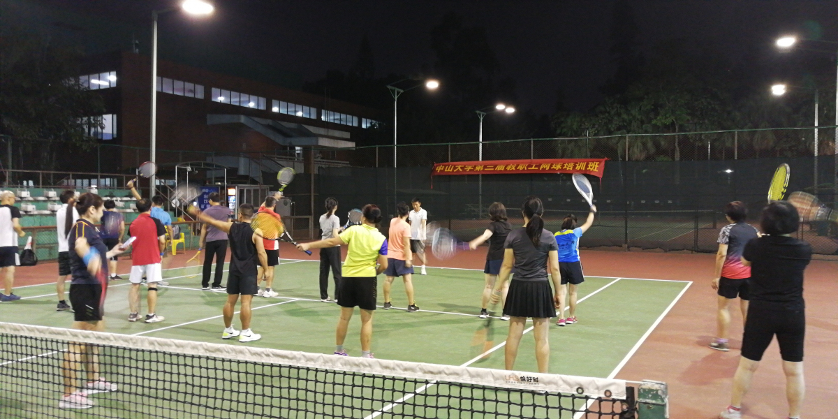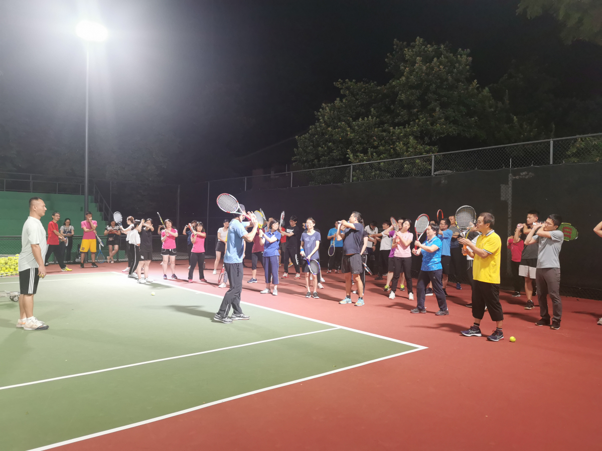 随着珠海校区长住教职工增多,为响应教职工的锻炼需求,经校工会、体育部共同努力,本学期珠海校区也首次开展了教职工网球培训活动。在10月14日晚的开班仪式上,体育部党总支书记凌春贤老师致辞,希望各位学员通过体育部各位教练精心准备的10次培训课程,能把标准动作固定下来,重复练习,提高网球球技,以球会友,达到放松身心、强体健身的目的。