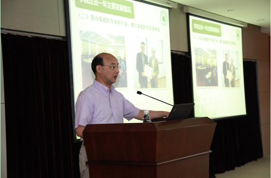 会上,代表们听取了黎孟枫院长所作的《学院工作报告》,黎孟枫院长在报告中指出:在全院师生的共同努力下,中山医学院扎实推进实施“十二五规划”,在人才培养、师资队伍、科学研究、学科建设、国际合作与交流、社会服务等方面均取得显著的成效。他强调,学院要结合学校发展目标和工作部署,围绕立德树人的根本任务,以“基础医学学科内涵建设”为主要抓手,以“争创一流”为发展目标,积极完成一级学科建设责任制试点学科建设的预期指标,为实现学院的跨越式发展,争创世界一流医学院而努力。