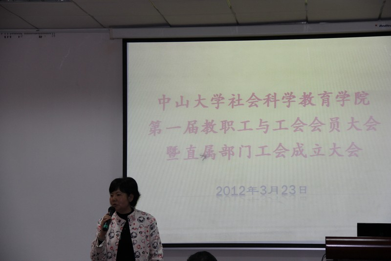 周云常务副主席在会上讲话,她对于社会科学教育学院在党政领导的大力支持下,在机构调整后的较短时间内就筹备成立直属部门工会给予了充分肯定,并指出工会工作在维护学校稳定,促进教学、科研与社会服务等方面具有重要作用。她又简要介绍了校工会今年的工作要点,对学院今后的工会和教代会寄予了殷切希望。