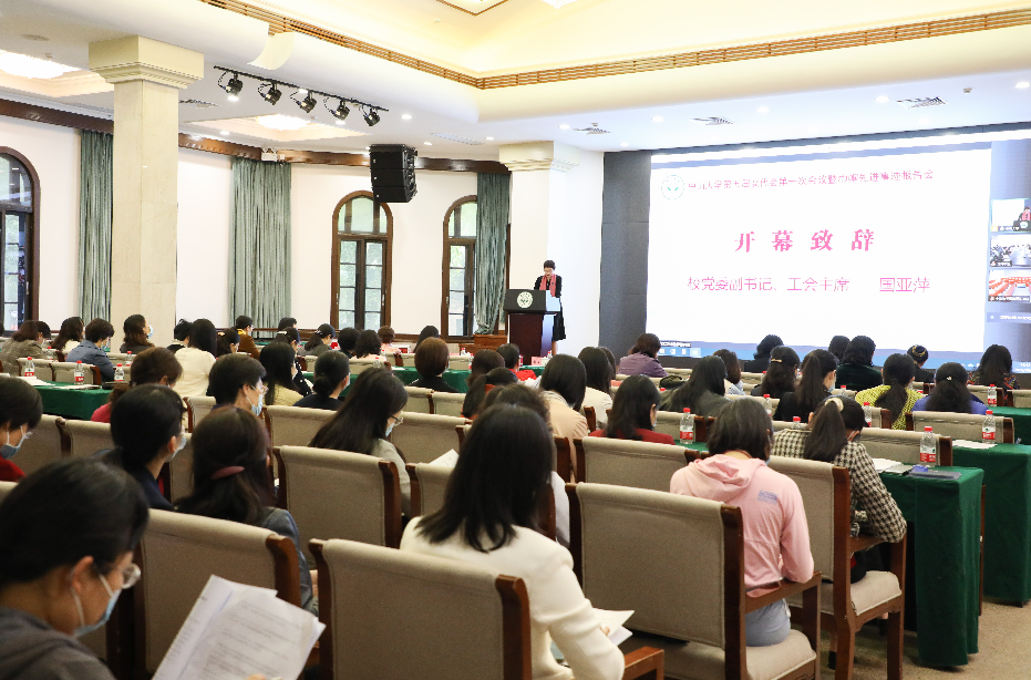 国亚萍副书记在开幕致辞中代表学校向大会的召开表示祝贺,对我校女教职工在教学、科研、医疗和管理等各战线推动学校改革发展做出突出贡献,在抗击疫情、助力乡村振兴中展现出来的勇于担当、尽职尽责、无私奉献的巾帼风采表示充分肯定;对新一届女教职委工作提出了期望和要求,要求女教职委要进一步加强习近平新时代中国特色社会主义思想的理论武装,深入学习贯彻习近平总书记关于工会和妇女工作的重要指示精神,坚定理想信念,心怀“国之大者”,不断加强自身建设,强化责任担当,把广大女教职工组织起来,为党育人、为国育才,以高度的责任感和主人翁意识投入到学校内涵式高质量发展的建设征程中,为我校加快建设中国特色世界一流大学不懈奋斗,以实际行动和优异成绩迎接党的二十大胜利召开。
