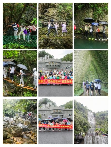 活动分为笔架山徒步和葡萄园摘果两个环节。在上午的徒步笔架山的过程中,老师们兴致昂然丝毫未受偶有小量降雨的天气影响,大家或撑伞或披雨衣沿溪而上,在石板路、浮桥、软梯、铁索桥、浮艇和滑索间尽情地穿梭,欣赏溪谷清泉、烟花瀑布等美景。笔架山瀑布总落差约208米,巨大的水幕飞泻而下,气势磅礴,令人心旷神怡。在学期末拥抱大自然,使老师们充分释放工作和疫情等方面的压力,享受与家人同事在一起的开心时刻。
