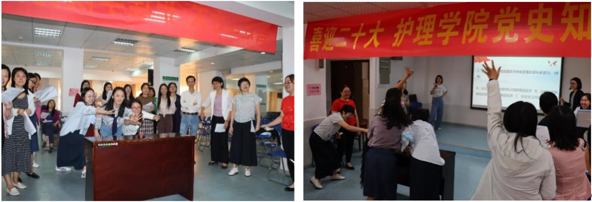 为迎接党的二十大胜利召开,展现我校教职工奋进新征程、建功新时代的精神风貌,进一步凝聚共识,助力学校实现高质量内涵式发展,校工会发起“喜迎二十大,唱响新时代”群众活动的号召。护理学院分工会积极响应号召,于2022年10月13日下午在学院二楼讲学厅举办党史知识有奖竞赛活动。