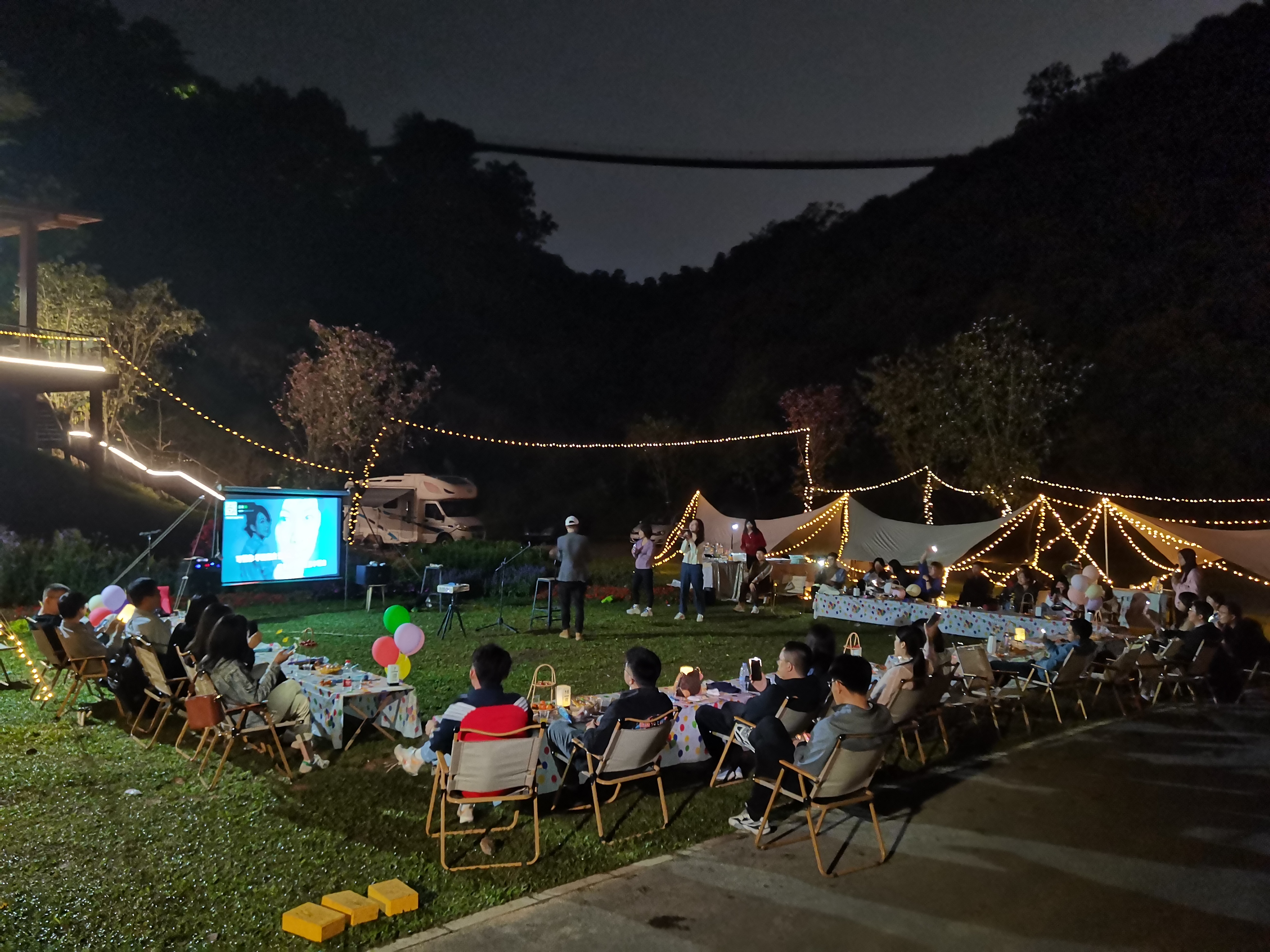 傍晚时分,进入晚餐烧烤环节,大家三五成群、随意走动,品美食聊家常,气氛轻松愉悦。夜幕降临后,大家自发一起唱歌,一首首经典歌曲余音绕梁。活动接近尾声,大家仍兴致盎然,结伴夜游,探秘虹桥。夜晚的虹桥,灯光柔和,空气中弥散着泥土的清香,走在来时同样的道路上,心里却增添了一份舒适放松。