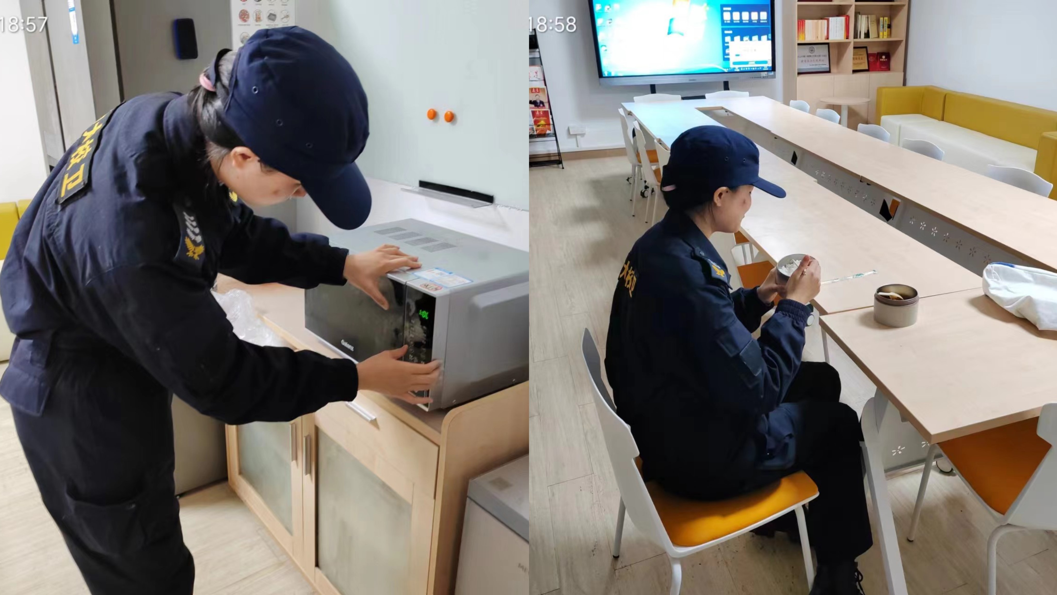 “天气寒冷,饭菜打包回来就凉了,多亏了爱心驿站,终于可以吃上一口热饭了。”作为这里的“常客”,安保队员小何为“爱心驿站”点赞。