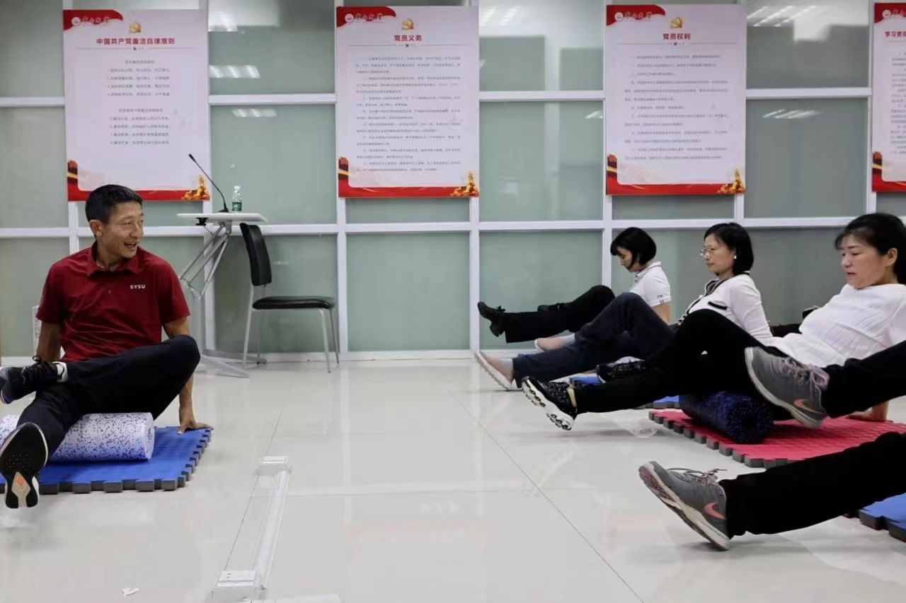 为扎实推进主题教育成果转化,切实关心关爱教职工,解决“一线教学科研和管理人员文体活动参与率较低”等问题,4月12日,校工会在深圳校区启动“送运动到团队、到部门”并举办了首场活动。4月23日,校工会联合体育部和机关分工会,在中山楼举办“送运动到团队、到部门”的第二场活动,该活动也是机关分工会精品活动项目。活动面向一线工作人员,为机关干部送去弹力带、泡沫轴等“运动健康工具包”,教会大家在繁忙的工作中,抓住碎片时间,使用操作简便的运动健康工具,养成日常运动的习惯,保持充满活力的健康状态。