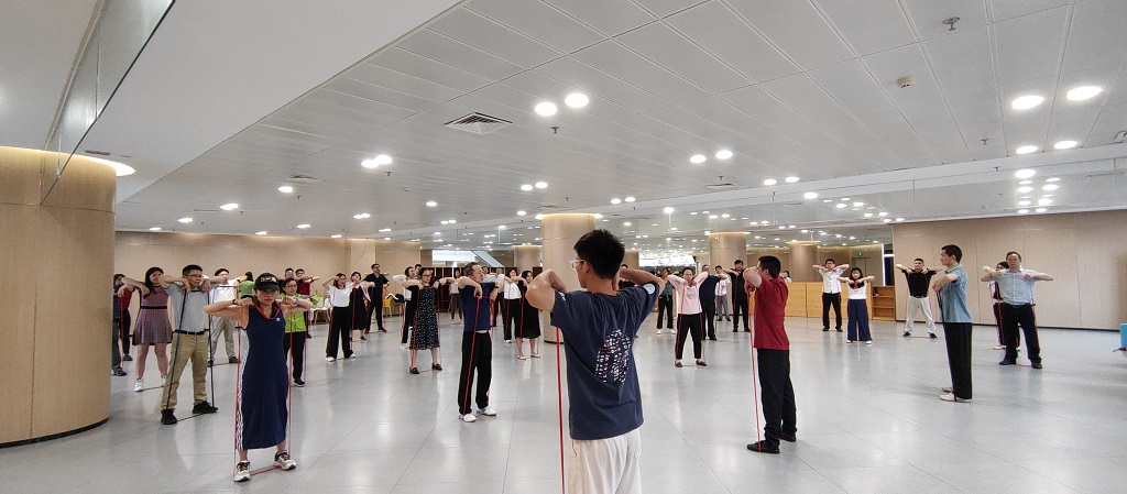 教代会代表一行还参加了校工会“送运动到团队”活动。