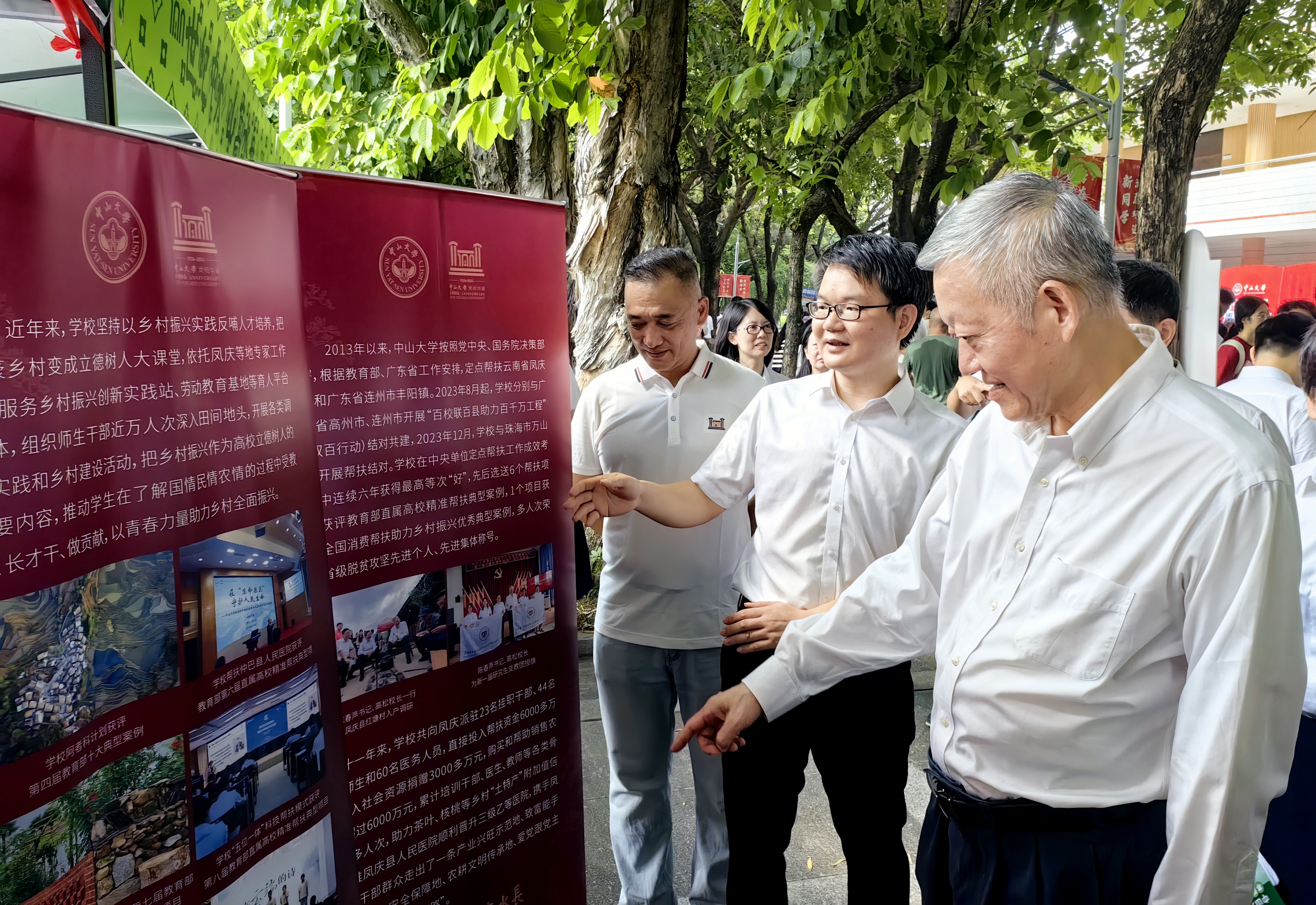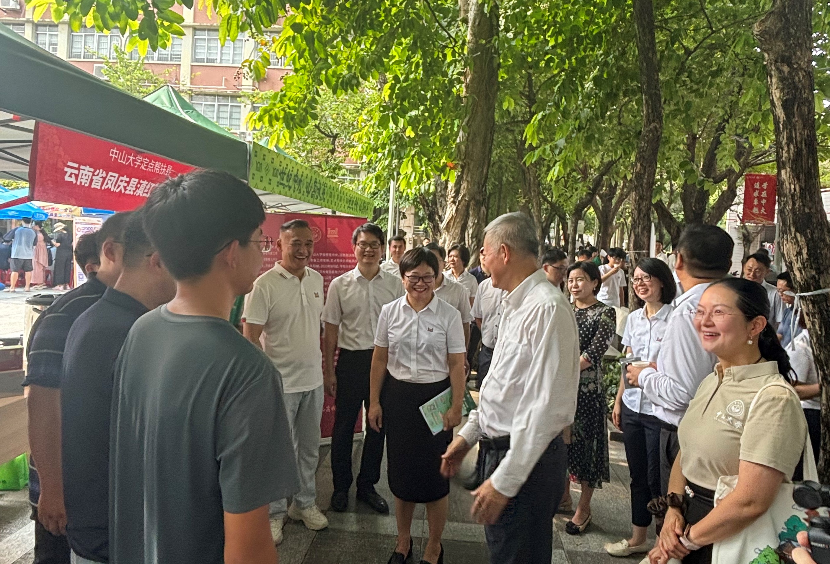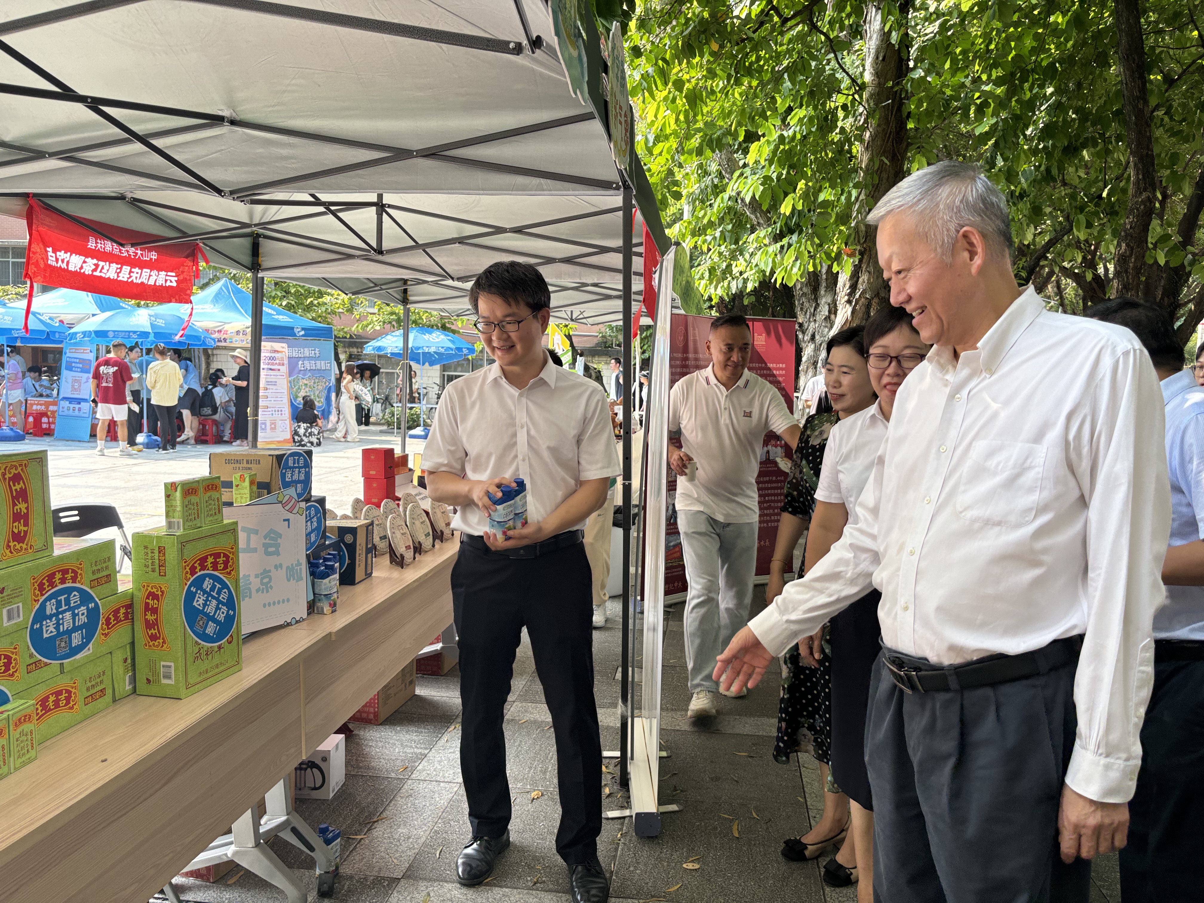 8月28日上午,校党委书记陈春声、副书记张琪一行,来到广州校区南校园亲新广场迎新接待现场,看望慰问奋战在高温酷暑迎新现场一线的工作人员,并视察了“送清凉”活动现场。陈春声书记强调要关心关爱每一位教职工的身心健康,对现场一线工作人员顶着烈日冒着酷暑,为学校人才培养建设作出的贡献表示崇高的敬意和衷心的感谢。