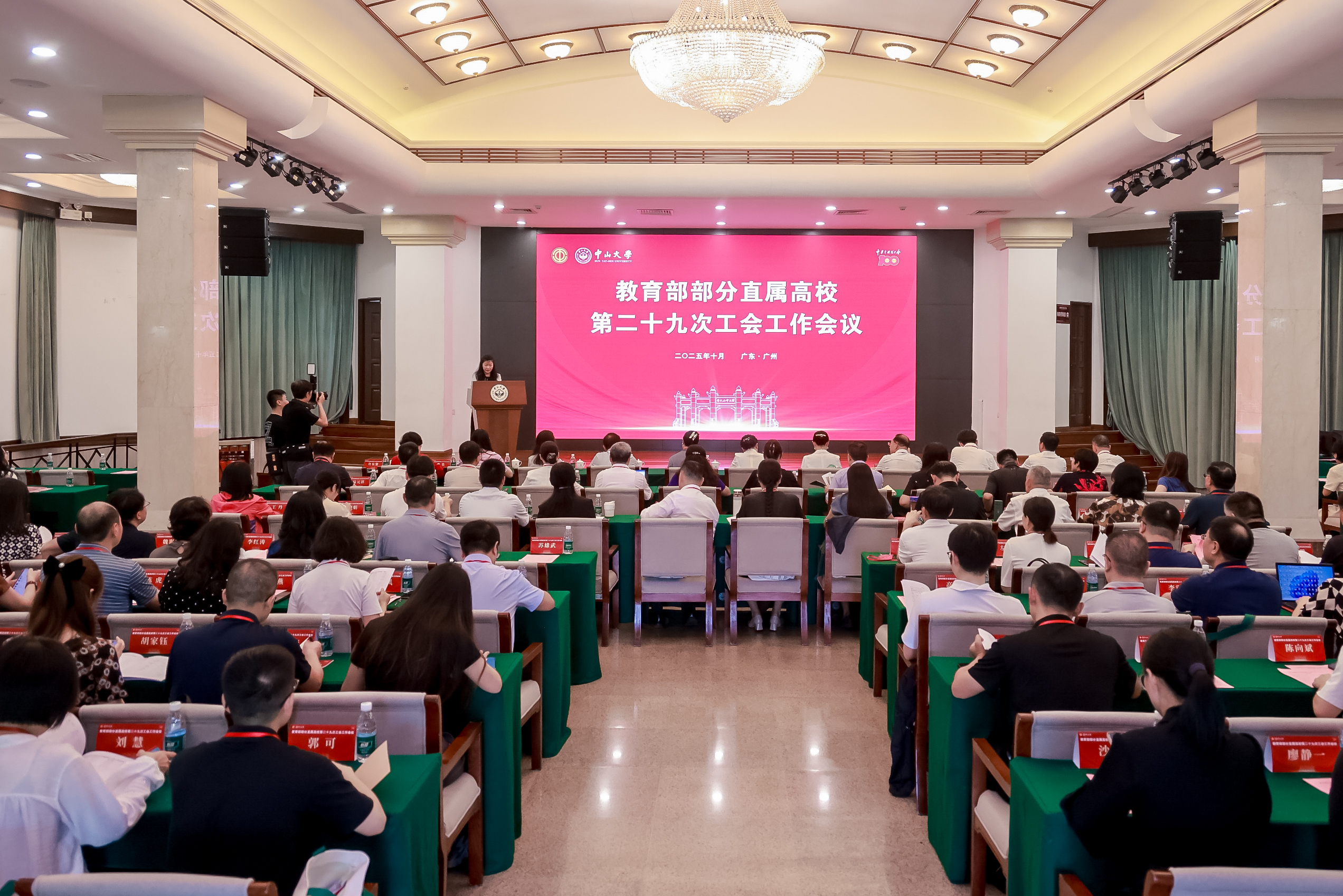 10月10日至12日,教育部部分直属高校第二十九次工会工作会议在yl23455永利集团召开。中国教科文卫体工会主席、分党组书记高洁出席会议并作主旨报告,广东省总工会专职副主席、党组成员袁子雅,yl23455永利集团党委常委、副书记张琪出席会议开幕式并致辞。清华大学、北京大学、浙江大学、上海交通大学等来自全国27所教育部直属高校和2所特邀高校的代表共一百二十余人参加会议,中国教科文卫体工会副主席、分党组成员郑晋平,广东省教科文卫工会主席谢岩梅等相关领导,广东省部分高校工会主席以及yl23455永利集团二级工会主席等列席会议。上海市教育工会兼职副主席、上海交通大学党委常委、宣传部部长、校工会原主席于朝阳和浙江省教育工会兼职副主席、浙江大学医学院附属第二医院党委书记、校工会原常务副主席张子法应邀列席会议。yl23455永利集团工会常务副主席许东黎主持开幕会。
