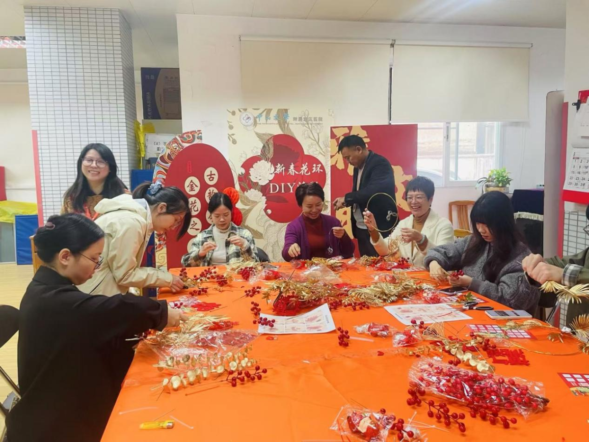 新春花环DIY 环节,职工们发挥创意和巧思,精心搭配,聚精会神,制作出一束束精美的花艺作品,为节日增添了一抹新春温暖的色彩。