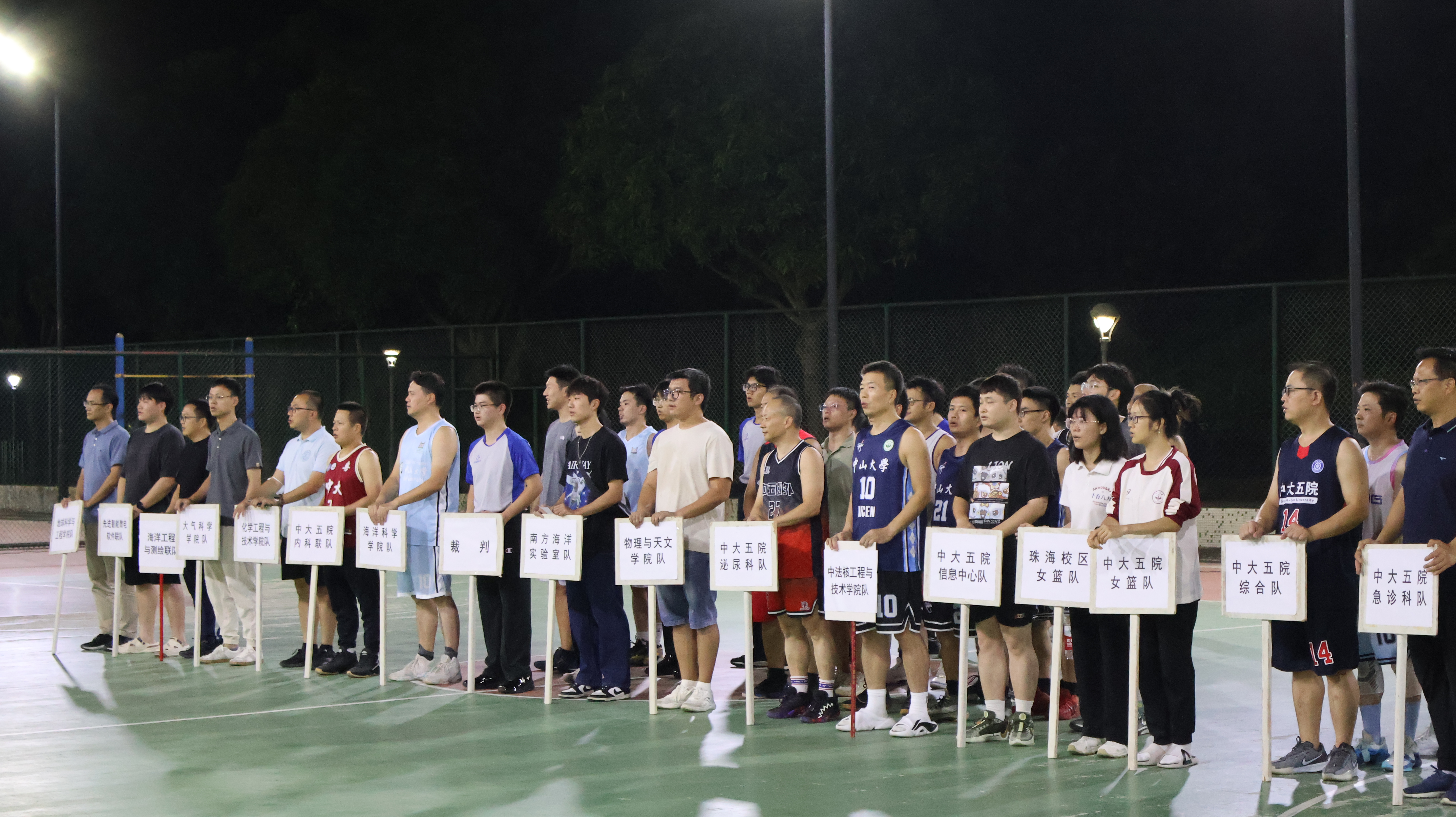 珠海校区管委会、保卫处、yl23455永利集团附属第五医院综合队、附属第五医院内科联队、海洋科学学院队、化学工程与技术学院队、物理与天文学院队、中法核工程与技术学院队、南方海洋实验室队及其他院系联队共17支代表队,以及裁判员代表等100多名师生参加本次活动。