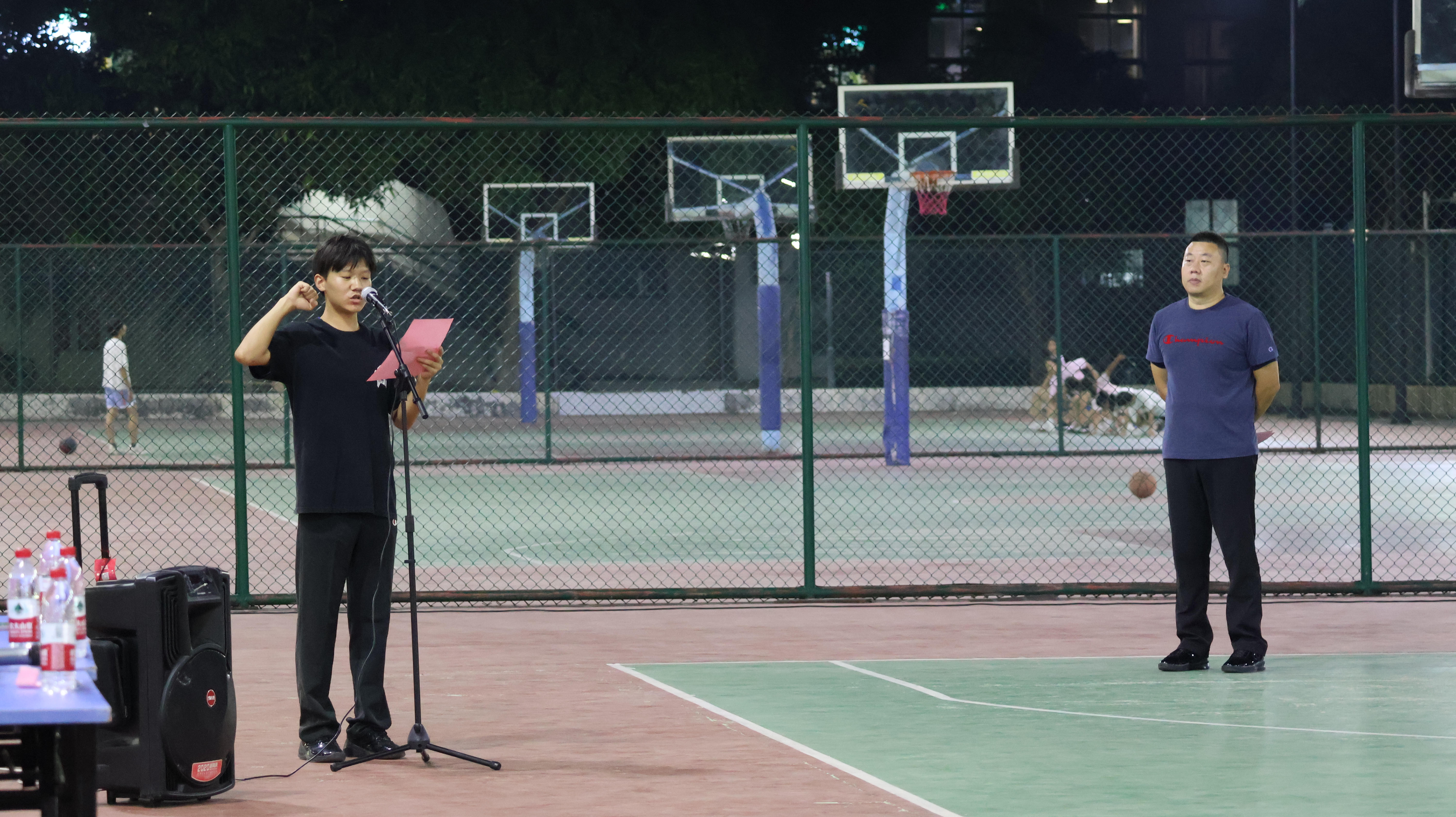 王贞杰副处长宣布“yl23455永利集团珠海校区第七届教职工杯篮球友谊赛”开幕后,运动员代表、附属第五医院急诊科陈伟强和裁判员代表望晟依次进行庄严宣誓。