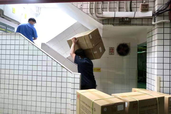 “夏天的时候的确会比较难受,没干一会儿衣服就打湿了。北院区比较老旧,有些楼栋没有电梯,都需要我们人工去抬。兄弟们也从来没有过什么怨言。”彭文贵说完,便抬起一个大箱子,步伐坚定有力地向楼梯走去。