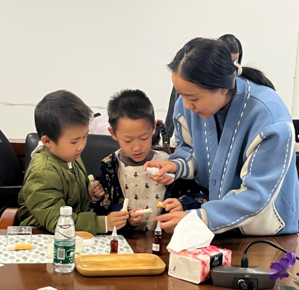 此次教职工亲子活动以“撷香印象”作为活动主题,将芳香知识学习和手工制作相结合,兼具知识性与趣味性。活动伊始,芳疗师介绍了芳香疗法的历史和精油在中国的推广,生动有趣的互动问答环节点燃了现场参与人的热情,在专业的讲解中,大家了解了这一古老而神奇的疗愈技术在生活中的应用。