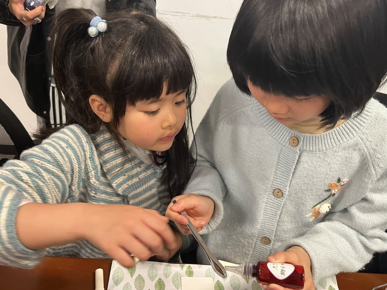 紧接着就是有趣的手工制作环节,参与家庭共同配合,按照指引先后加入主料、辅料,并进行融化,最后倒入模具中等待润唇膏成型。现场准备的所有制作材料均是天然安全的成分,为大家带来了良好的制作与使用体验,活动现场洋溢着一片欢声笑语。