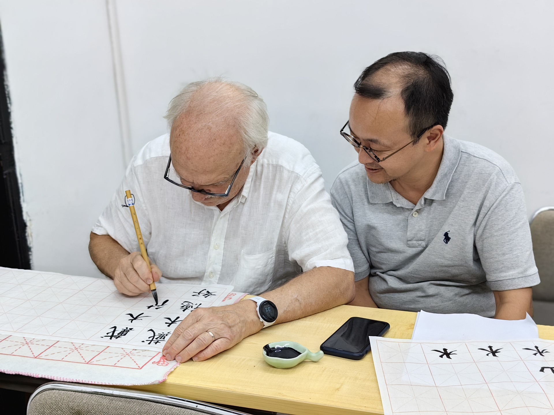 段老师指导来访的弗吉尼亚大学戴木德教授写字