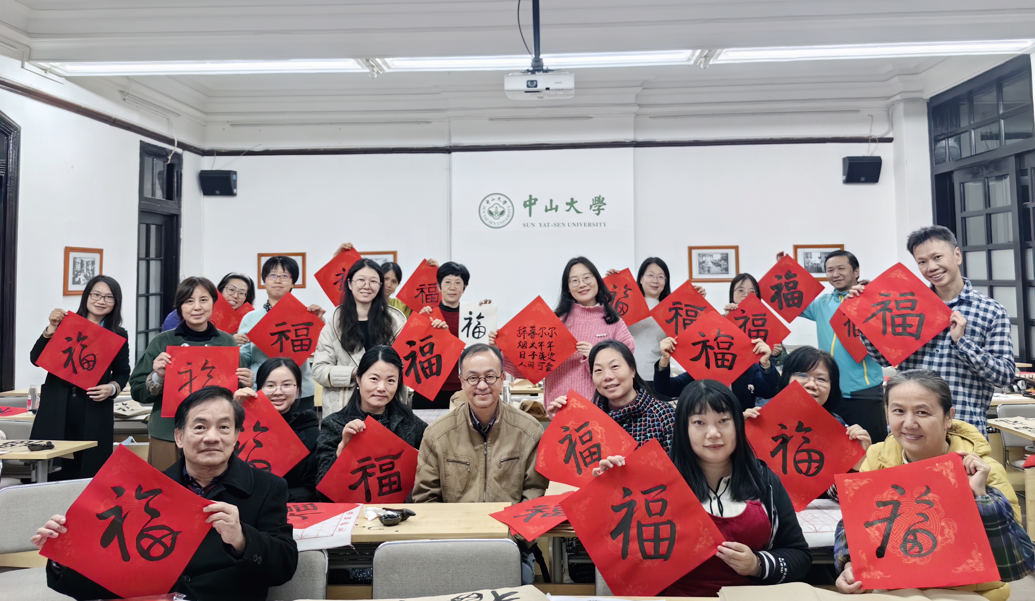 书法班“福”字合影