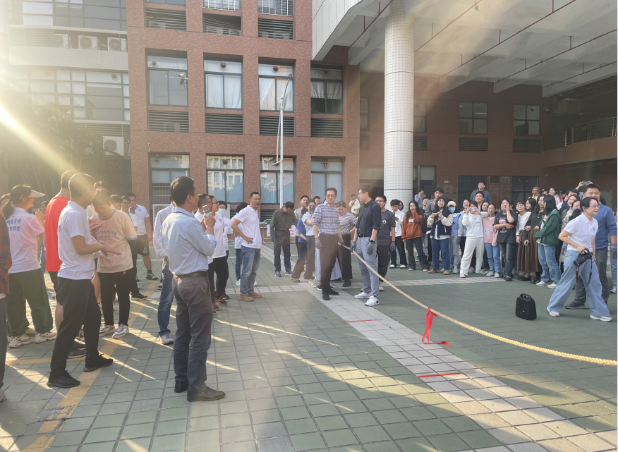 下午四点,在学院楼前广场上,在柔和的斜阳中,由5个教职工党支部牵头组建的6支参赛队伍整装以待,大家摩拳擦掌、斗志昂扬、跃跃欲试,周边挤满了热情洋溢的拉拉队员和自发前来加油助威的师生们。