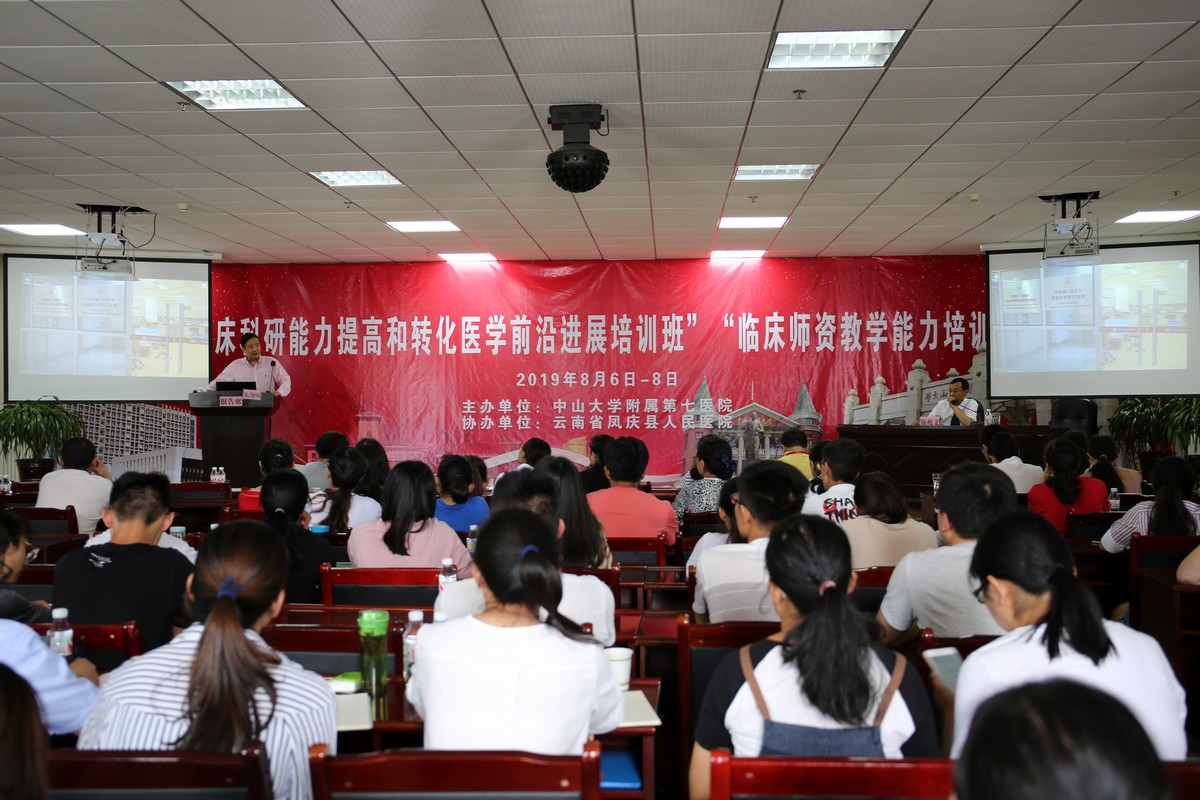 暑假期间,在附属第七医院党委书记苗伟带队下,20位专家抵达凤庆开展医疗帮扶工作,揭牌设立附属第七医院——凤庆县病理诊断中心,举办举行“临床科研能力提高和转化医学前沿进展培训班”、“临床师资教学能力培训班”,凤庆县各医疗机构共计300余名医务人员参加培训。在我校附属医院扎实有力的帮助下,凤庆县人民医院的医疗水平得到了快速提升。