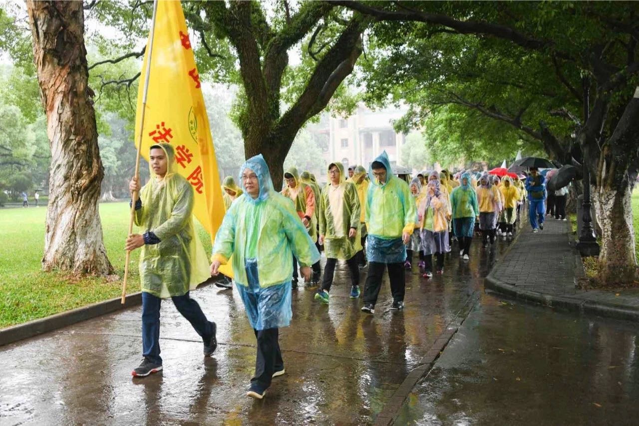 起跑仪式上,尽管下着小雨,全校57个单位的3200多位师生仍然一早就集合在永芳堂广场前,精神饱满整装待发。副校长李善民,校工会常务副主席吴京洪,校党委学生工作部部长钟一彪以及部分院系和部门领导出席了起跑仪式。仪式由校工会副主席彭志刚主持。