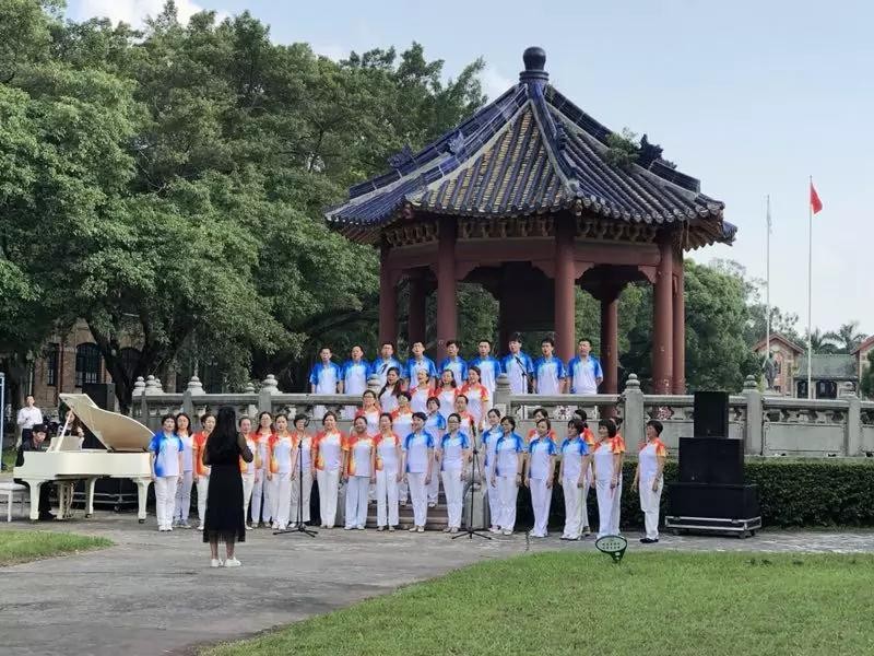 在康乐园草坪的茵茵绿地之上,教职工满怀中国梦的深情朗诵之声拉开了音乐会序幕,表达了对祖国的一生依恋。