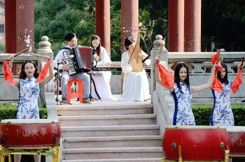 配乐诗朗诵《钱塘湖春行》婉转悠扬的琵琶乐音与声情并茂的朗诵交织让人在炎炎夏日依旧能感受沁人心脾的春行气息。民乐、手风琴合奏《新编十面埋伏》让观众们在西式手风琴与东方民族乐碰撞中收获了独特的视听体验。优雅温婉的旗袍秀《又见江南雨》让大家领略了中大女教职工的别样风采。大一本科生的巴扬琴独奏展现新一代的不尽激情,中大情怀代代相传。