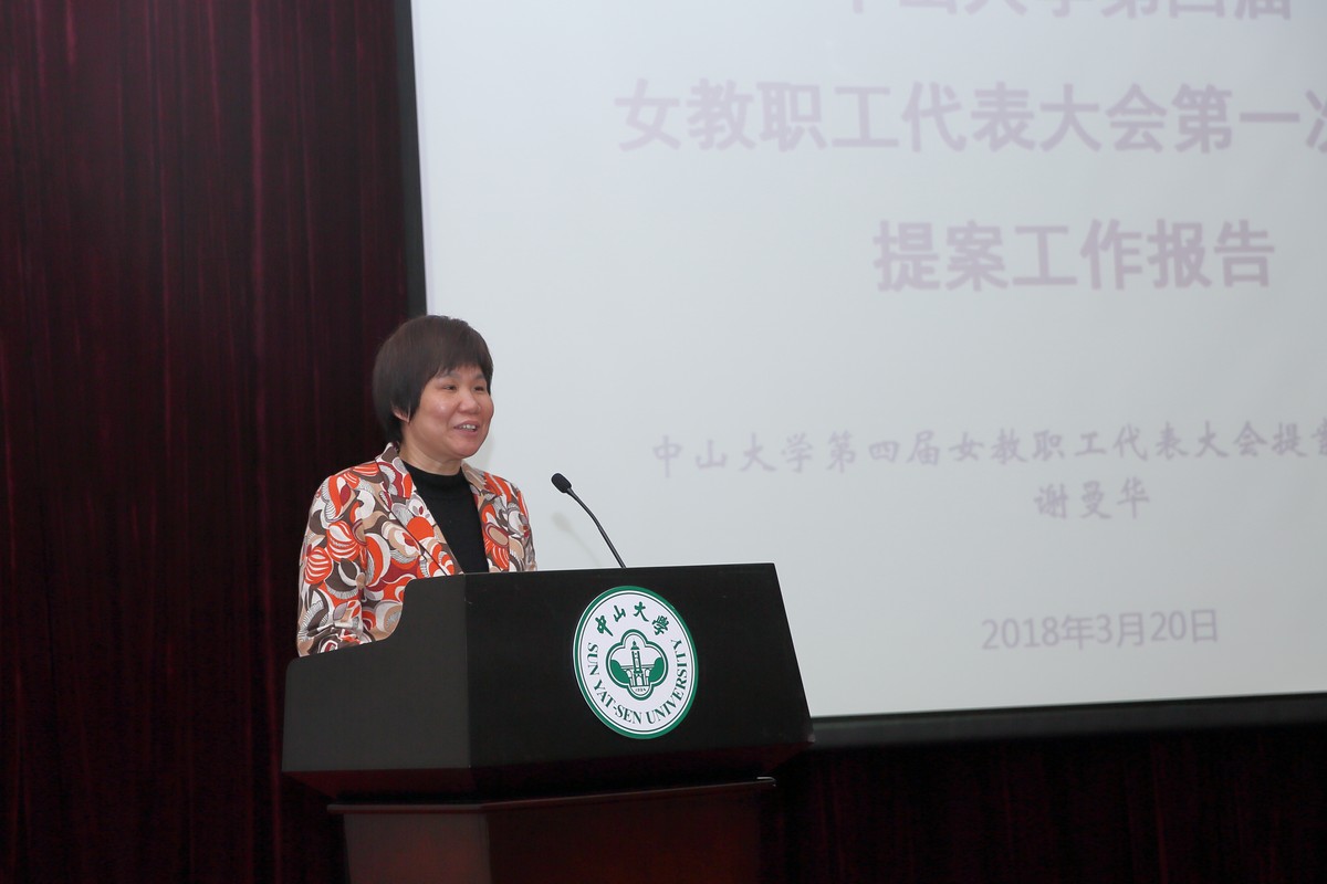 △ 校工会常委、“女代会”提案工作小组组长谢曼华作《yl23455永利集团第四届女教职工代表大会第一次会议提案工作报告》