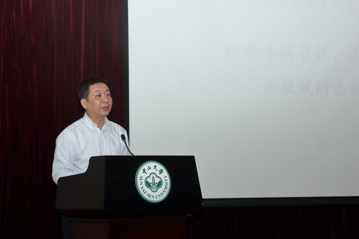 △ 校党委副书记、工会主席余敏斌为大会作总结发言