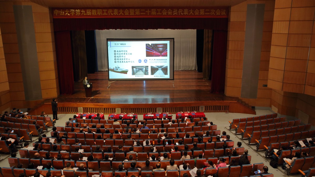 1月17日上午,我校第九届教职工代表大会暨第二十届工会会员代表大会第二次会议在广州校区南校园梁銶琚堂召开。校党委书记陈春声,校长罗俊,常务副校长孙冬柏,副校长黎孟枫、李善民、朱熹平、杨清华出席本次会议。大会由校党委副书记、工会主席余敏斌主持。来自54个双代会代表团的380多位正式代表和列席代表参加了会议。