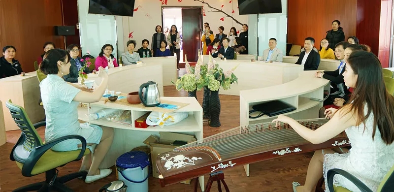 本次活动内容包括花艺制作及讲解,茶艺、西点、钢琴及古筝品赏、参观图书馆等。活动特别邀请了花艺讲师为大家讲授插花艺术的基本知识、花材、造型要素、器具、色彩搭配及技巧手法等并进行现场演示。