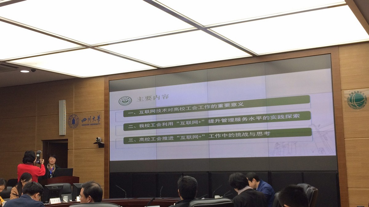 2017年11月17日,教育部部分直属高校第二十三次工会工作会在四川大学召开。本次会议由教育部部分直属高校第二十三次工会工作会理事会主办,四川大学工会承办。来自全国 31 所高校的代表和学校工会同志共65人参加。我校工会吴京洪常务副主席参会并在会上作了交流发言。