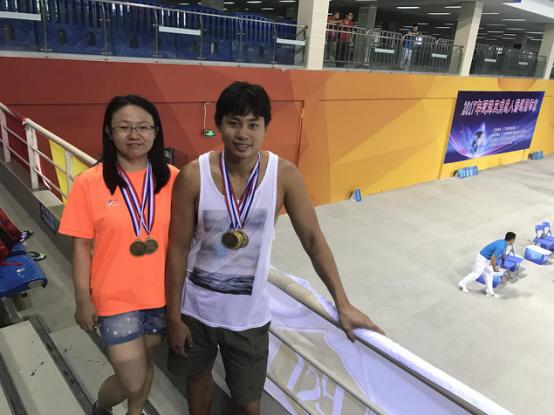 王仲良(外国语学院分工会)获得100米蝶泳和200米仰泳两枚金牌