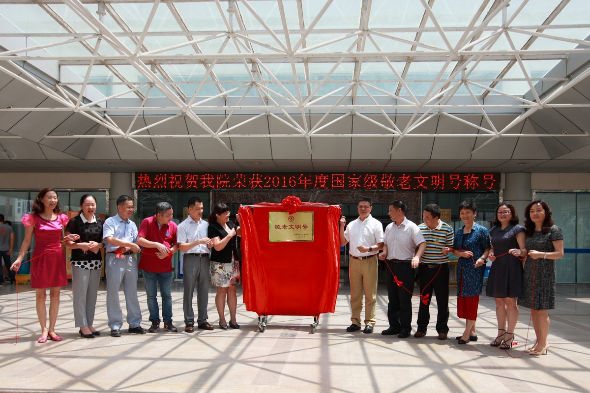 其后,吴京洪常务副主席、副主席李烨一行来到附属五院,与珠海市卫计局副局长黄林富,院长单鸿、党委书记林伟庭等班子成员、老年病科主任薛青共同参加2016年度全国卫生计生系统“敬老文明号”揭牌仪式,祝贺老年病科获得的荣誉,并对五院为老年病患者服务的理念和特色做法表示了充分肯定。