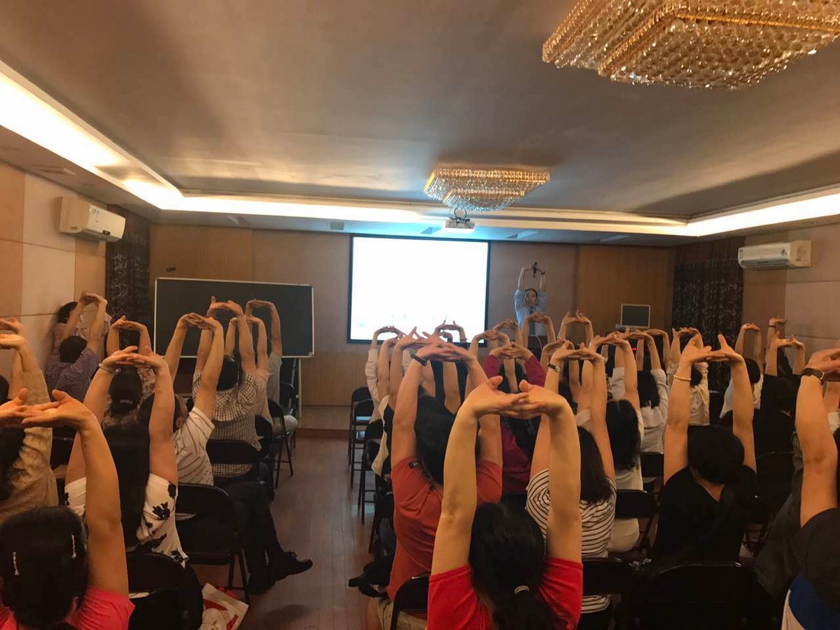 (王于领教授带领大家实操运动疗法)