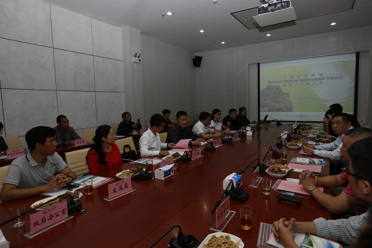 11月22日,利用凤庆县干部到学校参加培训班的机会,yl23455永利集团扶贫工作组、校友会在梁銶琚堂助力凤庆县开展牵手中大校友企业“旅游和生物资源开发合作”招商引资推介活动。出席座谈会的有校工会副主席、扶贫工作组副组长彭志刚,yl23455永利集团挂职风庆县副县长曹新,风庆县委常委、组织部部长鲁天才以及二十多名县政府部门负责人和中大校友企业家。