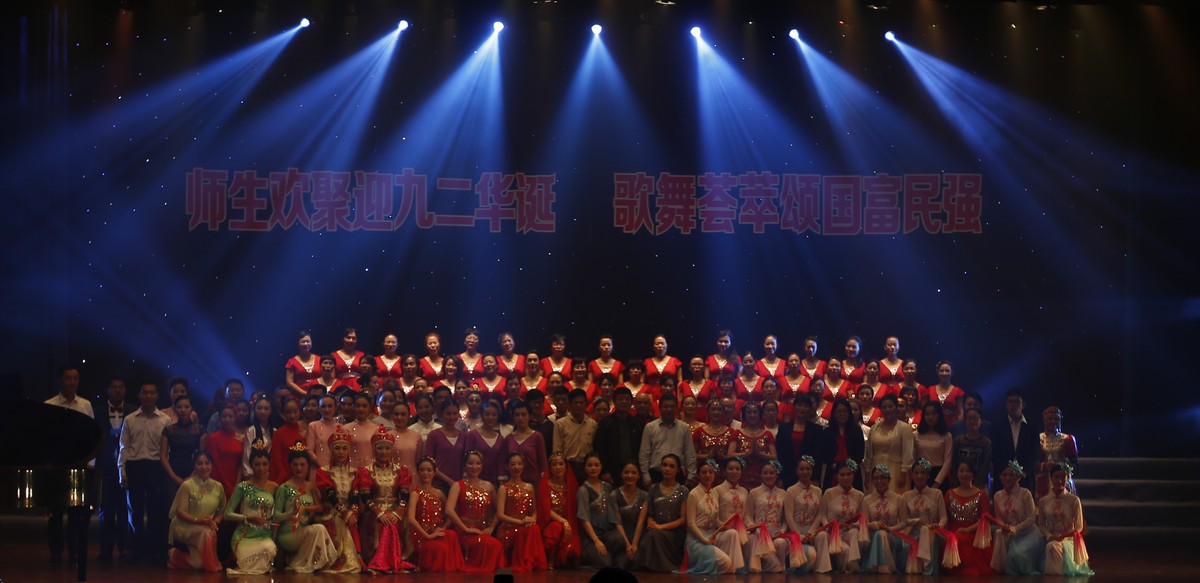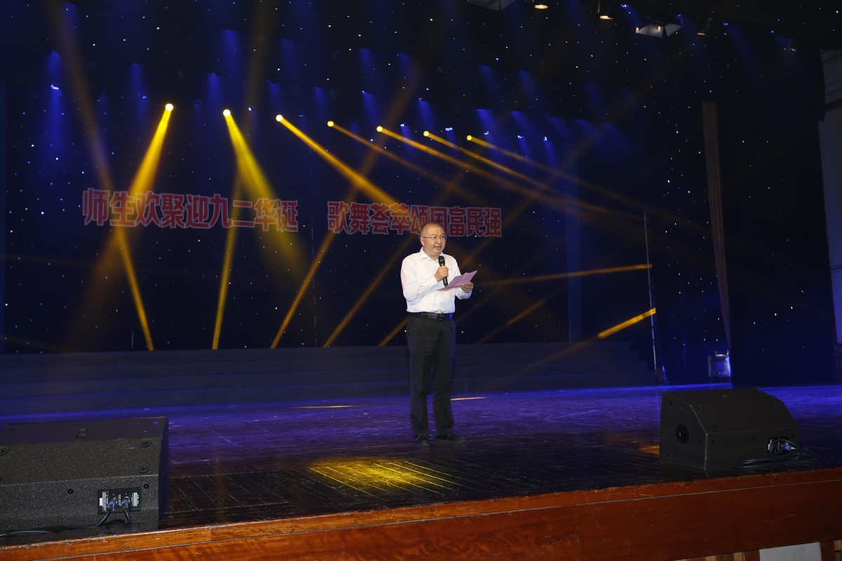本场晚会演出的主题是“师生欢聚迎九二华诞、歌舞荟萃颂国富民强”。晚会现场灯光璀璨、掌声雷动,来自学校近20家二级工会的1000多名师生员工带来的表演为现场观众奉献了一场视觉盛宴。舞台上既有年逾花甲的领军人才,也有各个领域的中流砥柱,有刚刚踏入工作岗位的青年才俊,也有埋头苦读的莘莘学子。节目的每一个音符、每一个节拍、每一个动作都融入了师生员工对祖国和学校的无限热爱与美好祝福,弥漫着浓浓的爱国、爱校深情。