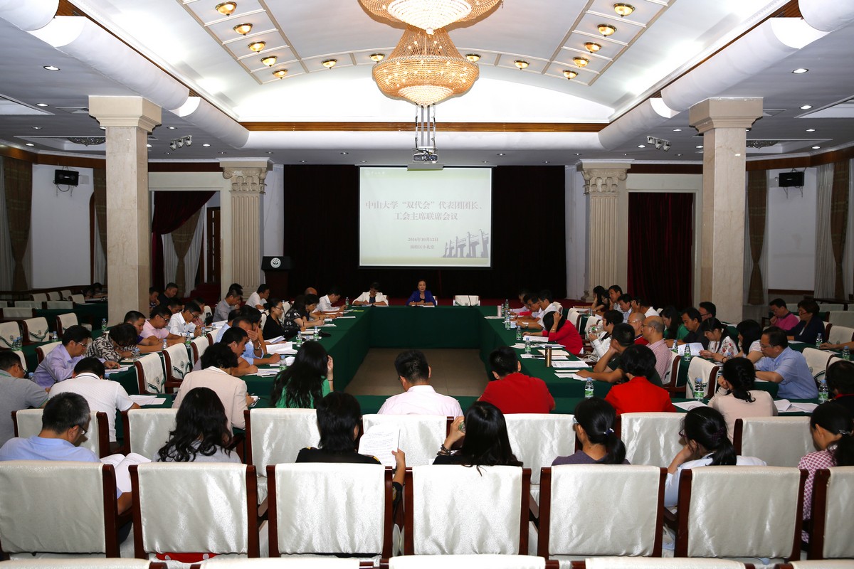 10月12日,我校“双代会”代表团团长、工会主席联席扩大会议在南校园怀士堂召开,“双代会”代表团团长、各二级工会主席以及新成立学院的党委书记等共74人参加了会议,校党委李萍副书记、工会主席出席会议,校工会吴京洪常务副主席主持会议并布置了学校新一届“双代会”、“女代会”换届筹备工作。