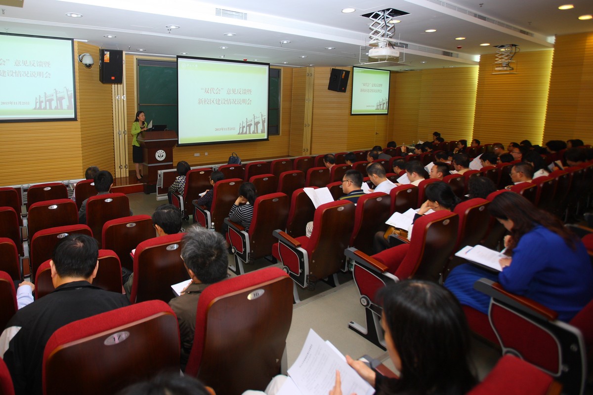 11月25日下午,“双代会”意见反馈暨新校区建设情况说明会在新数学楼209报告厅举行,“双代会”代表团团长、二级工会主席、校工会委员会委员及相关职能部门负责人100多人参加了会议。会议由李萍副书记、工会主席主持,杨清华校长助理作新校区建设情况和“双代会”意见反馈。