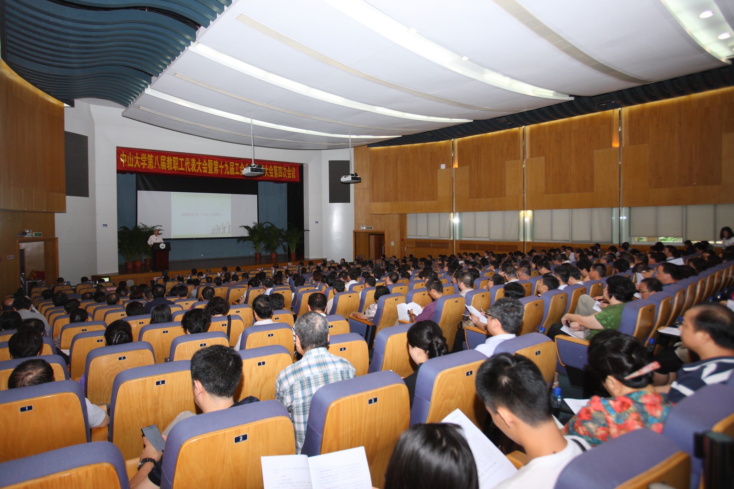 7月8日上午,我校第八届教职工代表大会暨第十九届工会会员代表大会第四次会议在南校区第三教学楼一楼讲学厅召开。我校党委郑德涛书记、罗俊校长、计亮年院士,校领导陈春声、颜光美、李萍、黎孟枫、魏明海、国亚萍、李善民、朱熹平、马骏出席了本次会议。大会由陈春声常务副书记、副校长主持。来自51个“双代会”代表团的380多位正式代表、特邀代表和列席代表参加了会议。
