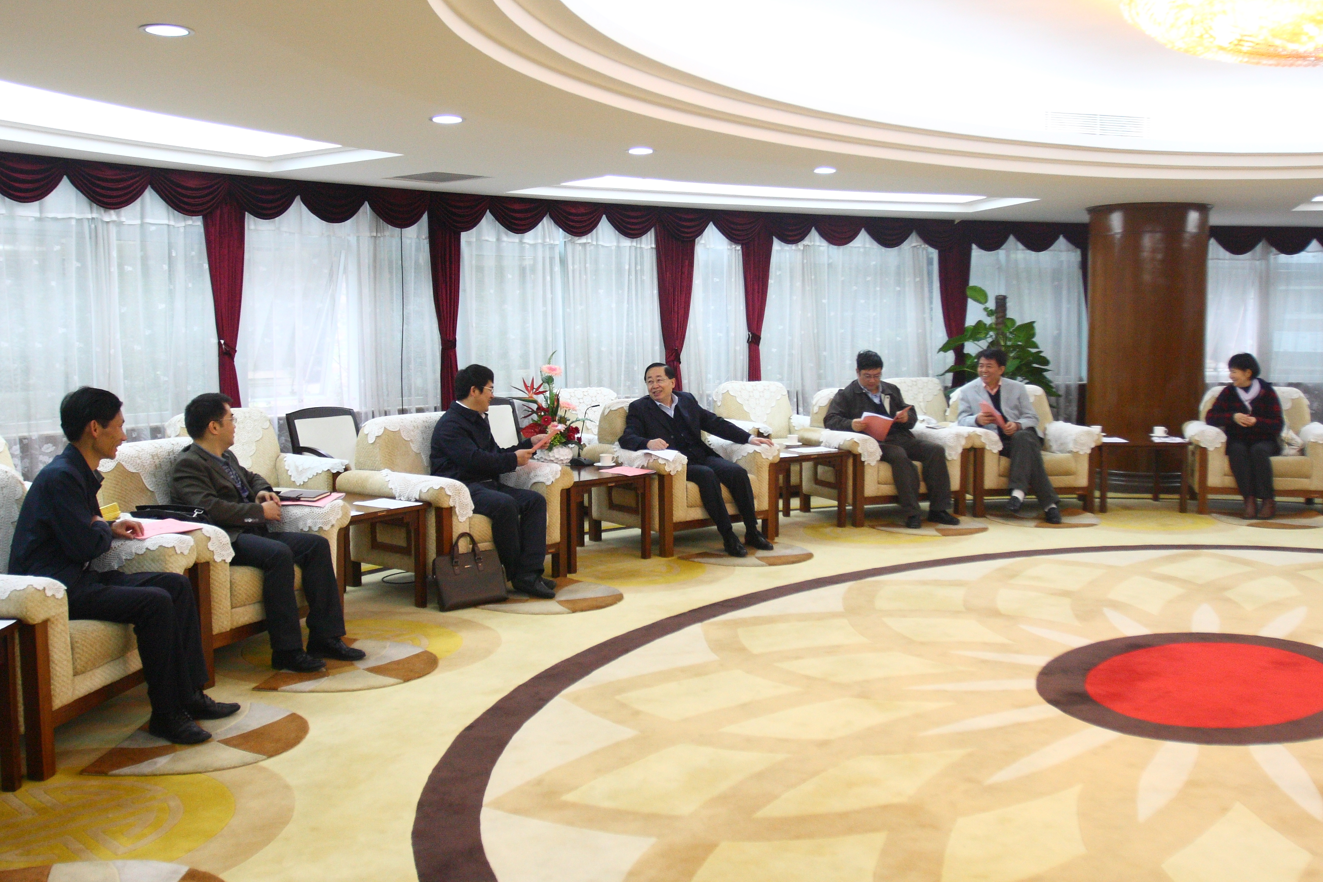 3月9日,云南省凤庆县县委书记陈昌砚,我校纪委正处级纪检员、挂职凤庆县人民政府副县长郑哲,凤庆县副县长陈正华,招商局局长蔡世宏,扶贫办主任徐志坤等一行7人到访我校。校党委书记郑德涛、旅游学院院长保继刚、图书馆馆长程焕文、校工会常务副主席周云、校团委书记黄毅、招生办主任吴晓枫、校工会副主席彭志刚等在中山楼会见了来访客人。