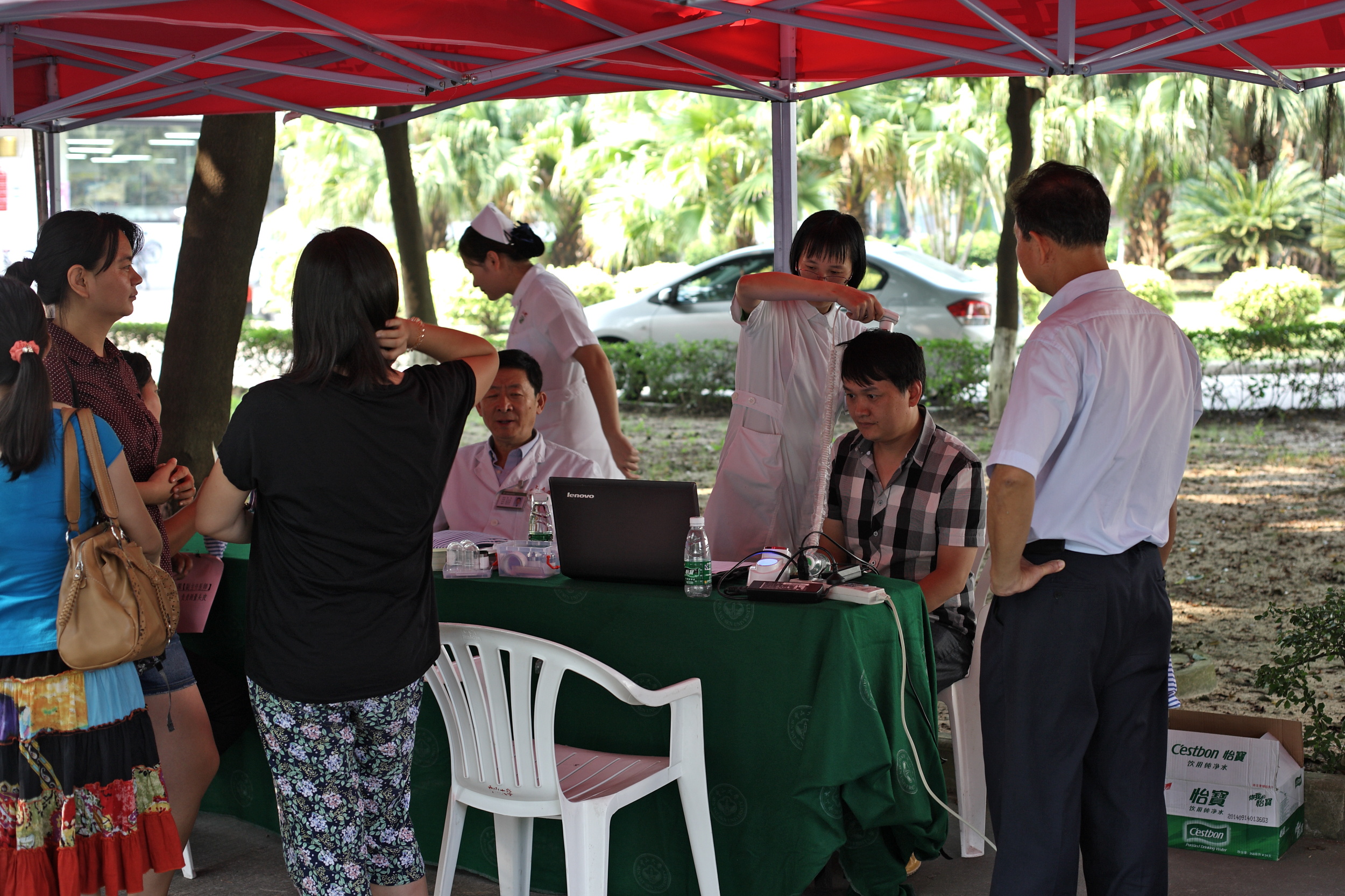 为庆祝第30个教师节,关爱教职工的身心健康,9月25日下午,由校工会、珠海校区分工会和yl23455永利集团附属第五医院承办的健康咨询活动在珠海校区商业中心广场顺利举行。来自附属第五医院6个专科的专家现场义务接受咨询,护士为教职工们免费提供视力检测、血压血糖和头皮发质测量。