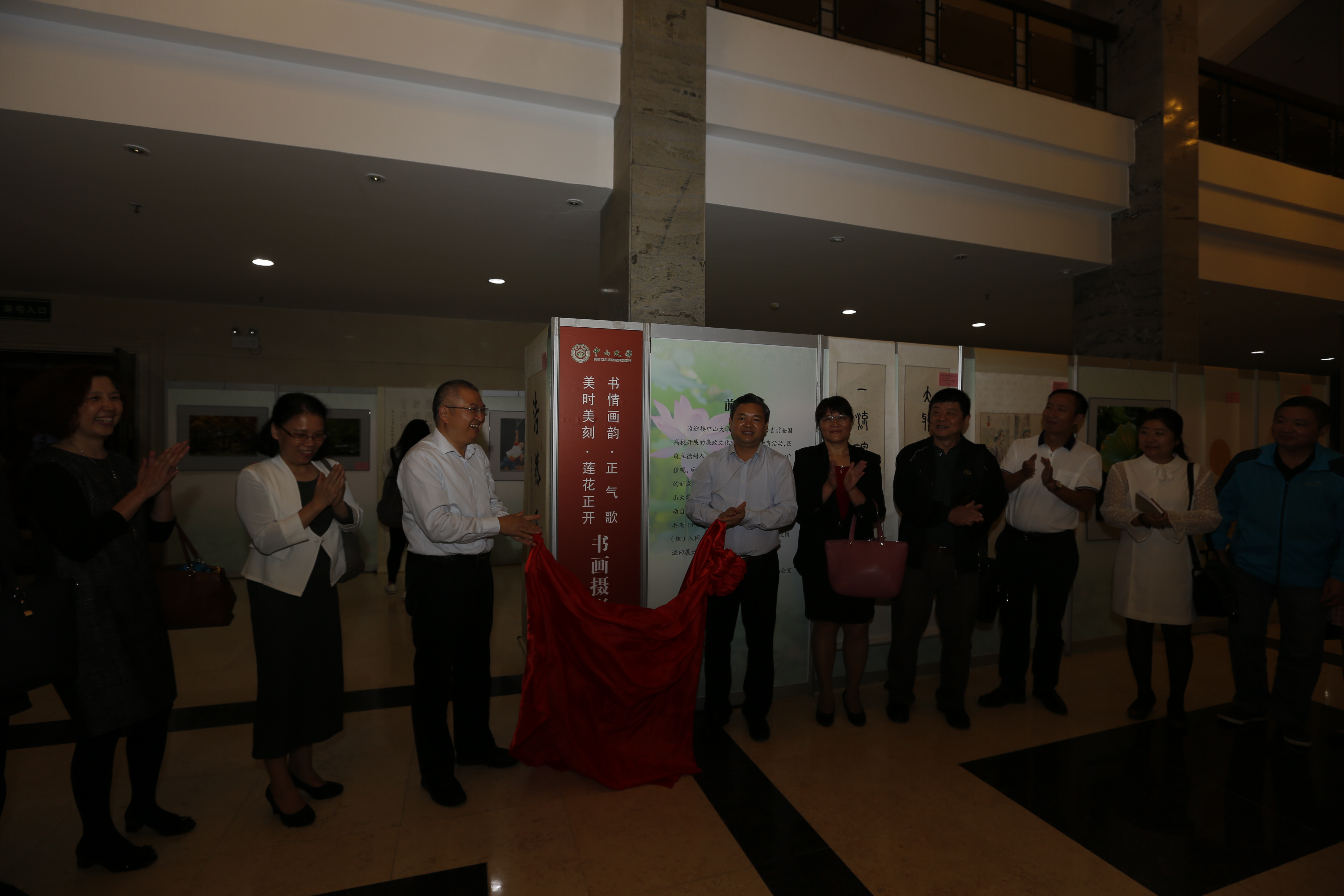 2016年11月4日傍晚,我校教职工廉政主题书画摄影联展在广州校区南校园梁銶琚堂开幕,我校李善民副校长、广东省教科文卫工会陈昭庆主席出席开幕式并为本次展览剪彩。开幕式上还举行了颁奖仪式,李善民副校长向获奖作者颁发了奖状。  为迎接yl23455永利集团92华诞,配合全国高校开展的廉政文化建设和廉洁教育活动,围绕立德树人,积极培育和践行社会主义核心价值观,反映我校廉政文化建设和廉洁教育活动的新成就,校工会、校纪委办公室联合向yl23455永利集团教职工征集“书情画韵正气歌”和“美时美刻莲花正开”书画、摄影廉政主题作品,活动今年5月启动,10月底组织书画、摄影的专家对所有参赛作品进行公开评选。本次展览于11月-12月在广州校区三校园及珠海校区共展出18位作者的书画、摄影作品36幅(组),均为我校教职工廉政主题书画摄影大赛入围作品。