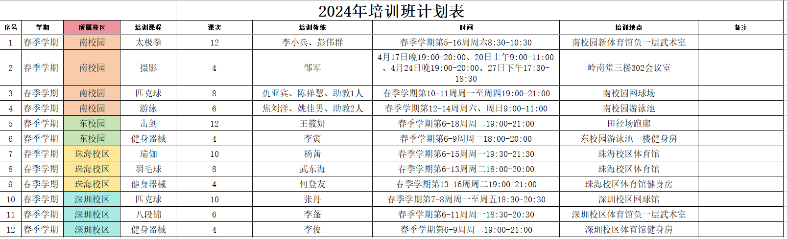 积极锻炼,健康相伴;文体同行,精彩生活。一起来看看本学期的课程安排吧!