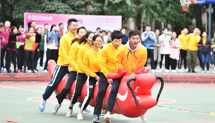 运动会上,职工们身着色彩缤纷的运动服进行健骨操比赛,他们优美的动作赢得了评委和观众的阵阵掌声。随后进行的“猛龙过江”、“携手共进”、能工巧匠”、 “集体杯子舞”等趣味项目比赛,考验运动员的默契和力量,参赛队员们你追我赶,各显神通,尽情享受运动带来的快乐。“球精图强,传递梦想”全体互动项目更是将现场气氛推向了高潮。