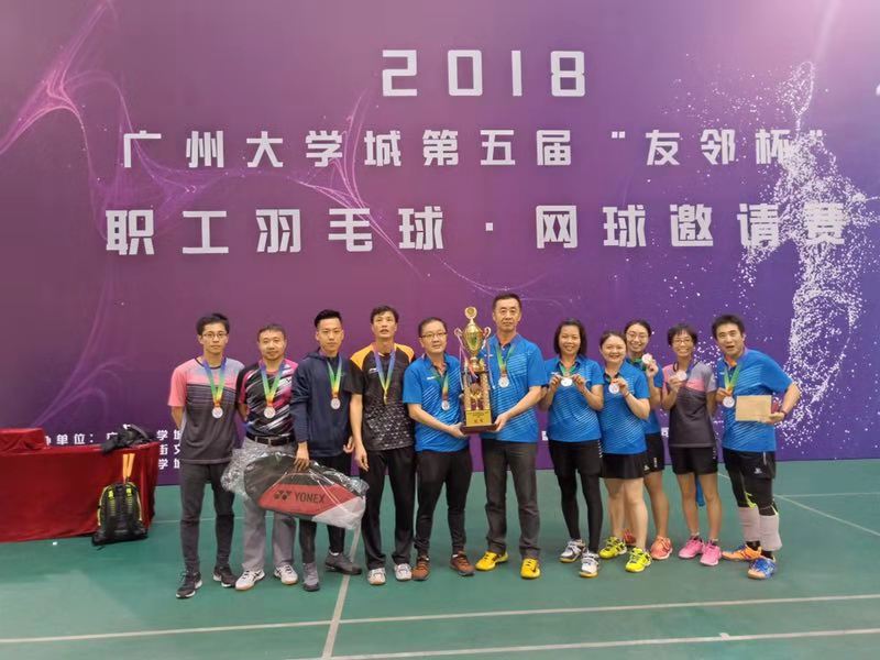 12月2日,经过一天紧张精彩的比赛,我校教职工羽毛球队在广州大学城体育中心自行车馆再次成功卫冕2018年广州大学城第五届“友邻杯”职工羽毛球邀请赛甲组团体冠军。