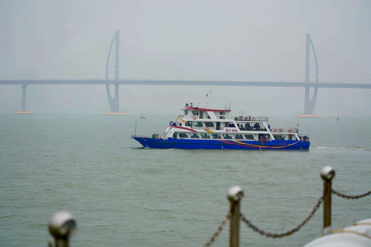 上午11时,老师们登上游船,90分钟的航程,伴随着导游声情并茂的解说,远眺澳门、珠海城市风光,近距离饱览举世瞩目的港珠澳大桥雄姿。作为中国从桥梁大国走向桥梁强国的里程碑之作,该桥被业界誉为桥梁界的“珠穆朗玛峰”,被英媒《卫报》称为“现代世界七大奇迹”之一。建设港珠澳大桥是国家支持香港、澳门和珠三角地区城市快速发展的一项重大举措,是“一国两制”下粤港澳密切合作的重大成果。大桥的建成通车,极大缩短香港、珠海和澳门三地间的时空距离。适逢大桥建成通车一个月,虽然天气不佳,但丝毫不影响老师们的观赏兴致。大家深刻体会到,大桥的建设是国家逢山开路、遇水架桥的奋斗精神的真实写照,是我国综合国力、自主创新能力的综合体现,通过参观,进一步坚定了我们对中国特色社会主义的道路自信、理论自信、制度自信、文化自信。