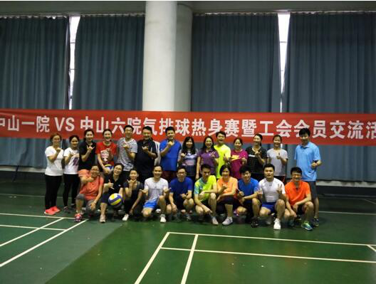 为备战本月中旬省科教文卫工会举办的气排球赛,5月13日下午,附属第六医院和附属第一医院两支球队在执信中学风雨球场进行了气排球热身赛和交流活动,现场大家热身、熟悉场地并认真听裁判讲解比赛规则。
