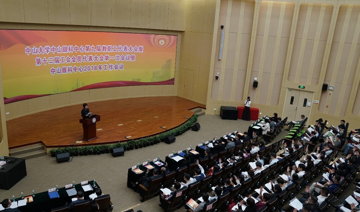 3月7日,中山眼科中心第九届教职工代表大会暨第十二届工会会员代表大会第一次会议暨中山眼科中心2018年工作会议在珠江新城院区学术报告厅召开。广东省科教文卫工会主席谢岩梅、校工会常务副主席吴京洪,中山眼科中心83名双代会代表出席了本次大会。大会还邀请了中心老领导,非“双代会”代表的副科级以上干部、副高以上职称职工,党代会代表,中心民主党派负责人和各级政协委员、人大代表等列席会议,共同谋划中心在新时代新征程上的发展大计。